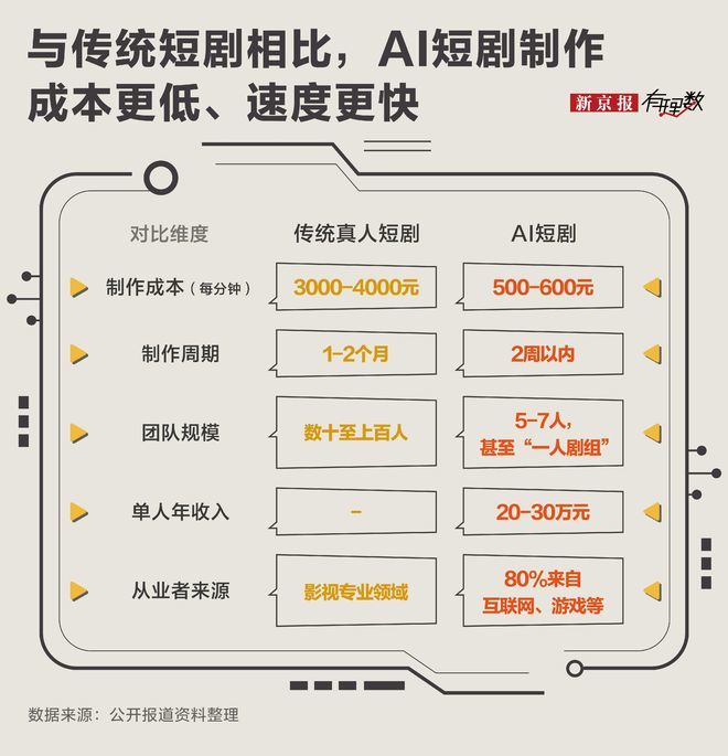 AI还澈底重构了创作团队:畴前需要数十上百东谈主联接,如今5—7东谈主小职责室即可全包,甚而出现“一东谈主剧组”——靠着“一台电脑、几款AI软件”,一东谈主一年能挣二三十万元。